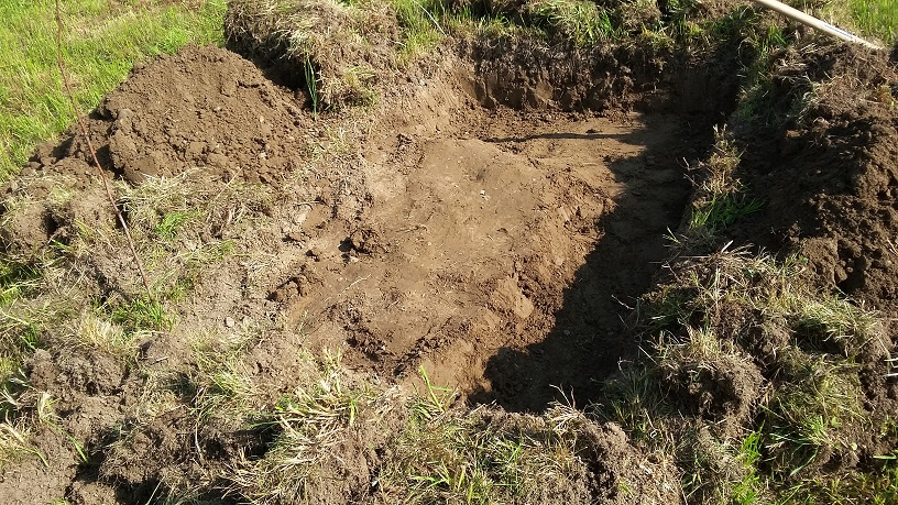 Die Tiefe des Aushubs beträgt zwei Spaten.