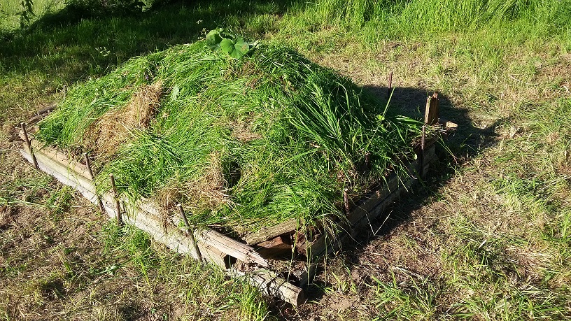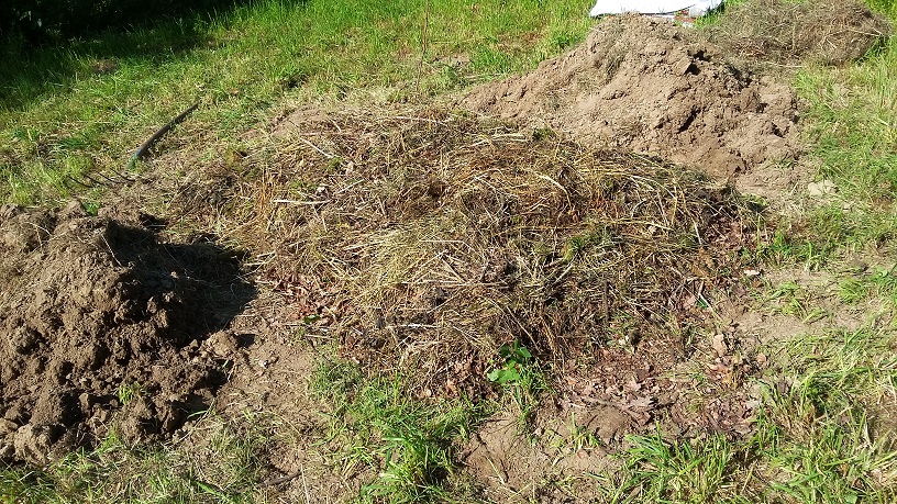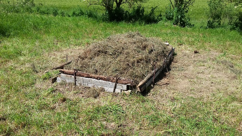 Jetzt wird grobes Material, z.B. grobes Heu oder Stengel aufgelegt.