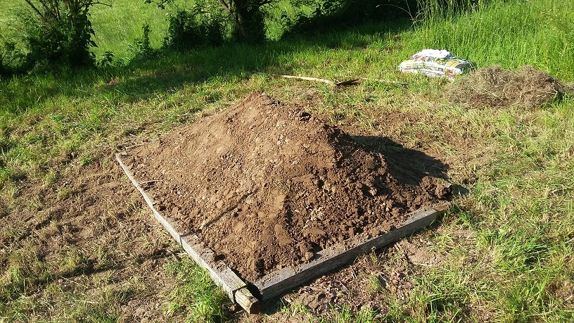 Kompost und gute Gartenerde deckt den Hügel ab.