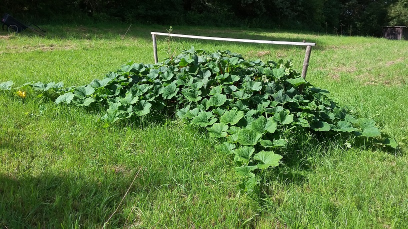 Ende Juni 2019: Der Mangold und vor allem der Kürbis gedeihen prächtig